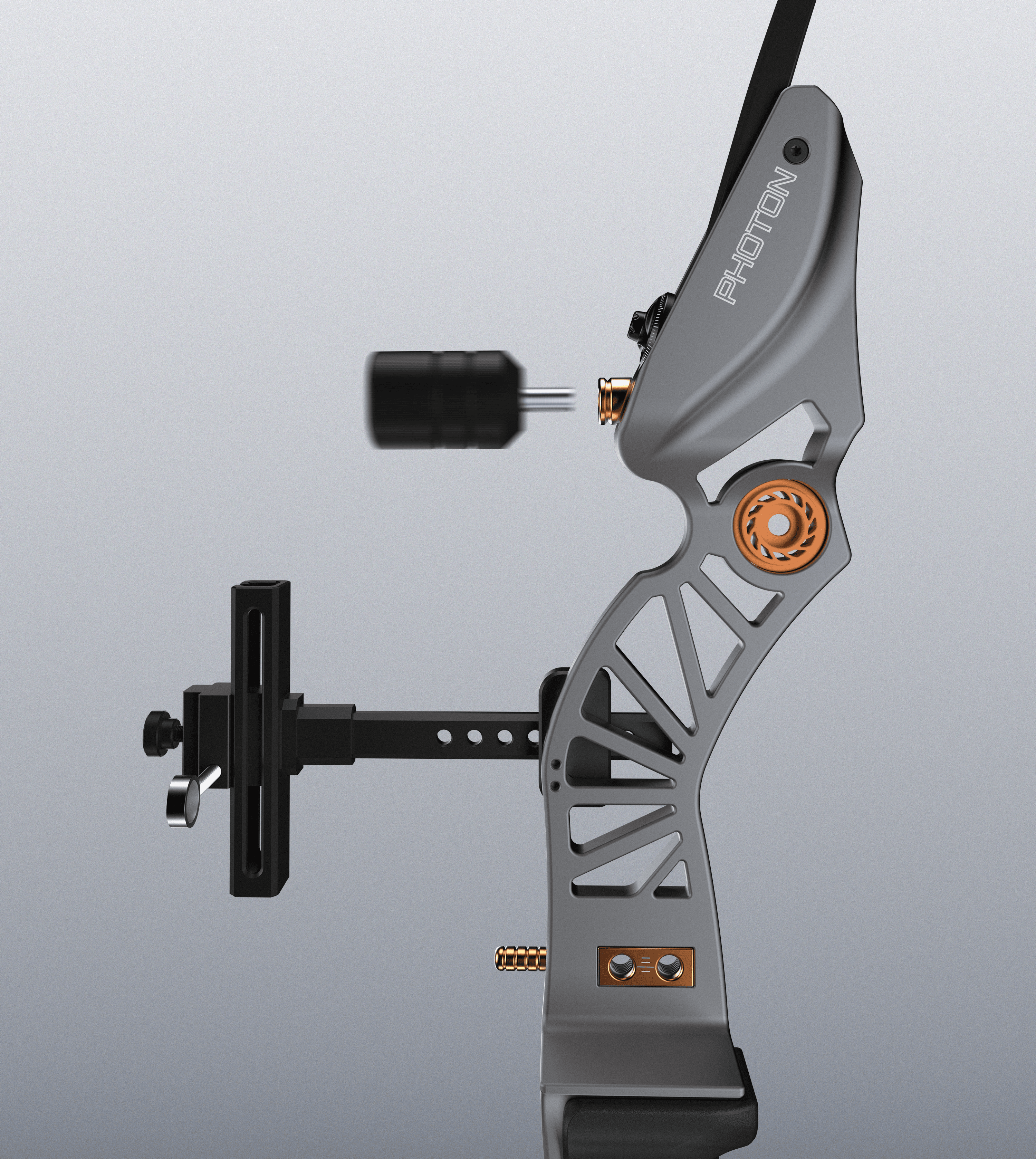 Photon BRST's 5 accessory mounts points are clearly accentuated with a color pop and a beveled bushing. The bushings are designed to be visible no matter what accessories are mounted. This gives the riser a consistent look, while also highlighting the archers chosen accessory.
