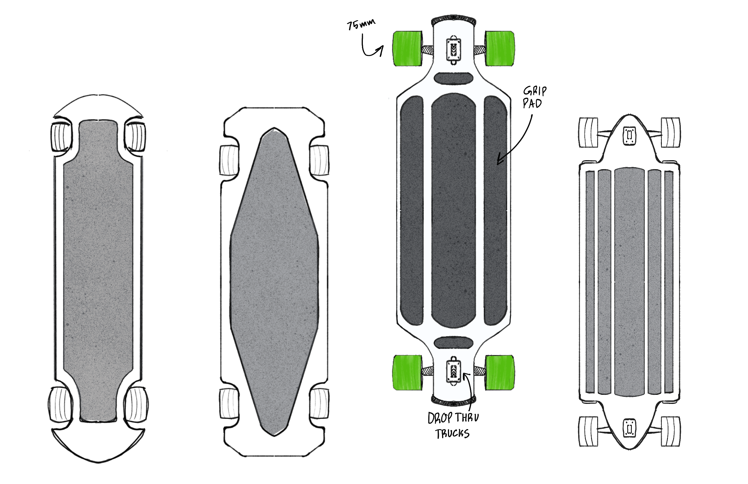 The form of a traditional longboard offers no additional useful features to riders.