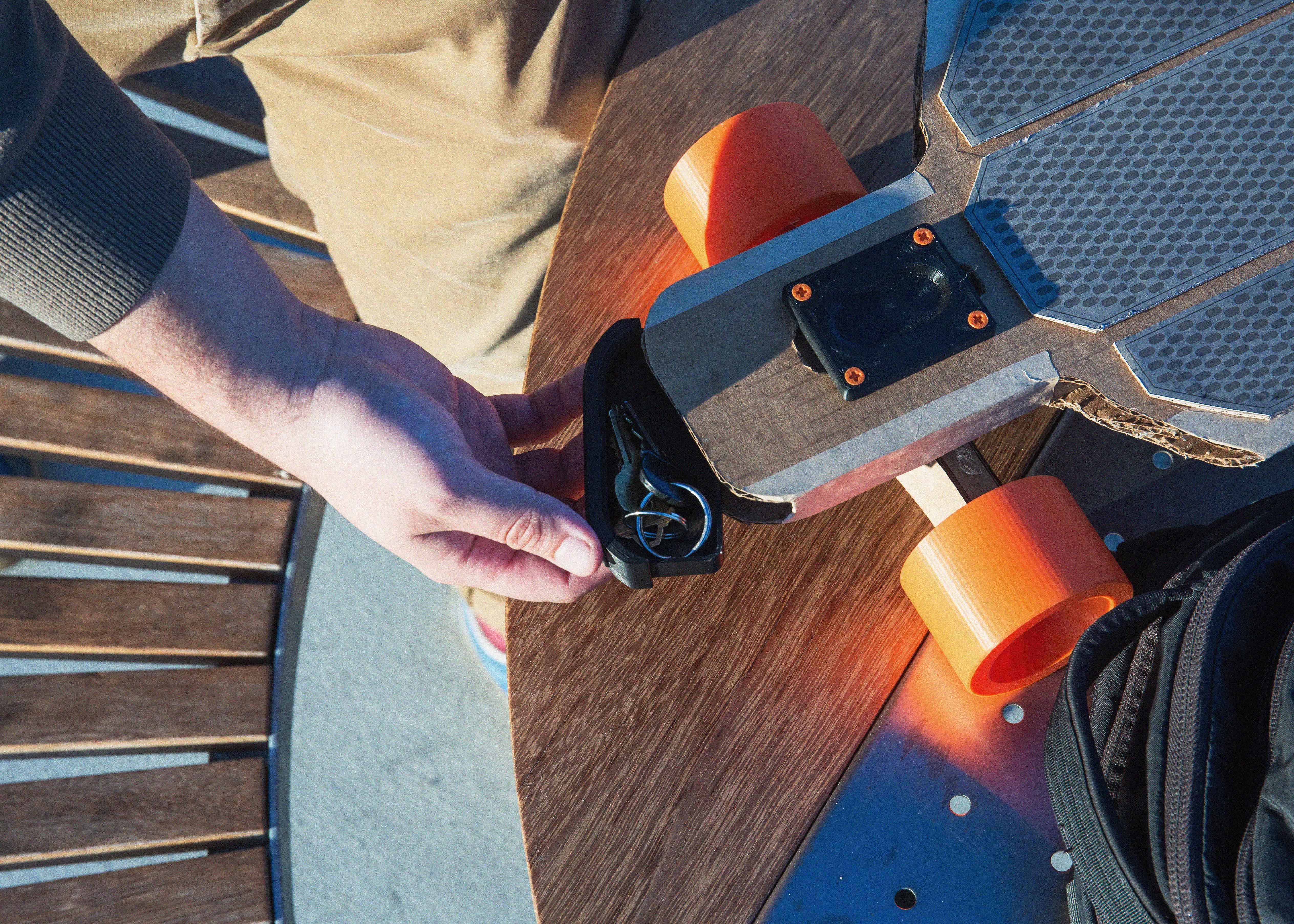 Alloy is a commuter longboard made from aluminum extrusion and eco-friendly materials. It offers the rider storage space, a more durable design and is highly recyclable.